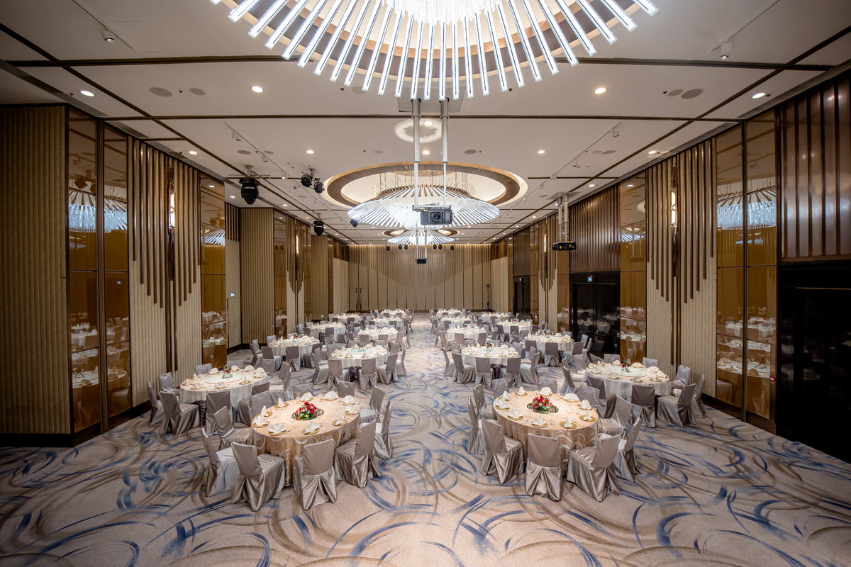 - 新裝修的無柱式宴會廳面積達 515 平方米,可容納 336 人(28 席),逾 6 米高樓底配襯華麗水晶吊燈,氣派不凡。