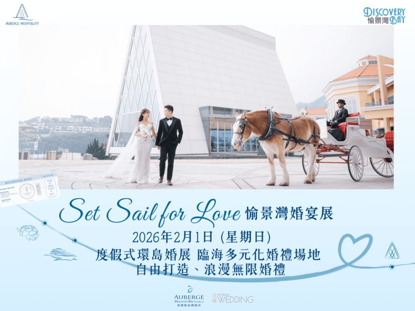 2026年2月1日(星期日)《SET SAIL FOR LOVE 愉景灣婚宴展》,為您的婚禮展開浪漫旅程~