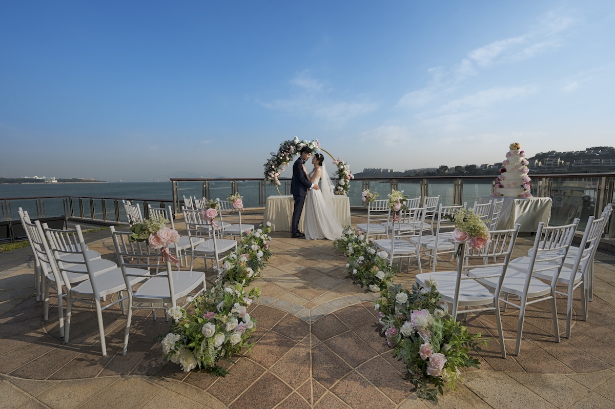 露天海玥台為新人打造理想的戶外婚禮;既能飽覽遼闊海景,亦適合舉辦雞尾酒會或與親友共進自助餐,讓每個時刻都成為美好回憶。