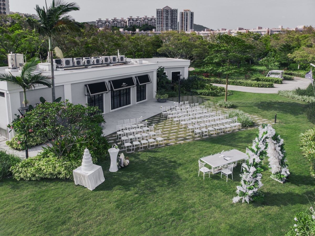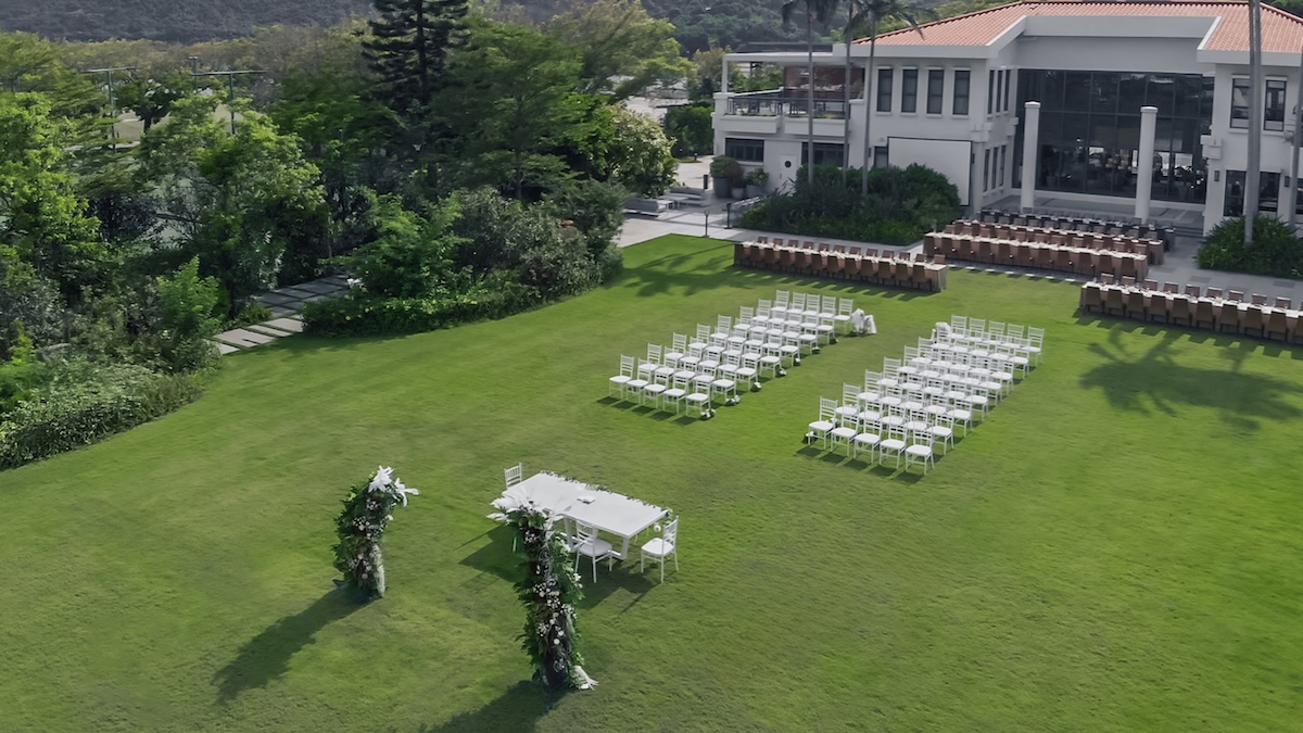 位於隱密寧靜之處,寬廣翠綠,背景是壯觀的遊艇碼頭和一望無際的大海。這個獨特的戶外場地可以容納 120 至 150 位賓客,讓您與摯親好友共同見證永誌難忘的一刻。