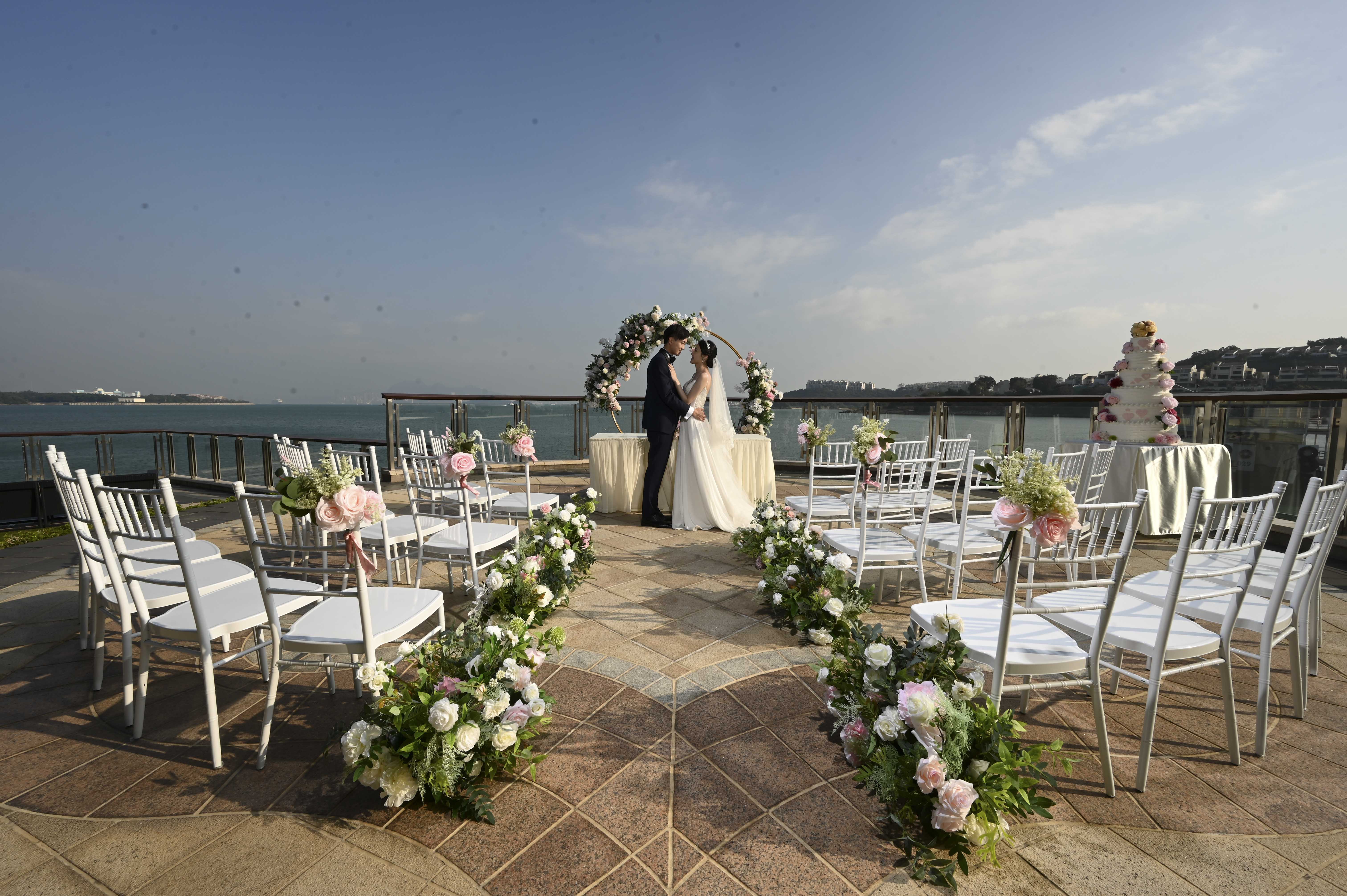 露天海玥台為新人打造理想的戶外婚禮;既能飽覽遼闊海景,亦適合舉辦雞尾酒會或與親友共進自助餐,讓每個時刻都成為美好回憶。