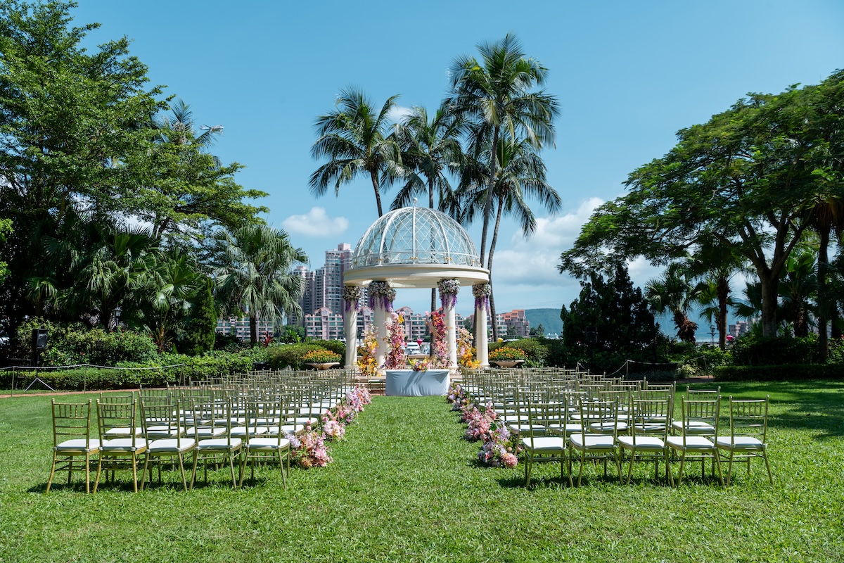 環抱獨一無二海灣景色的綠茵花園,是舉行戶外證婚典禮的理想場地。為園林內的最大草坪,讓您可面向臨海的雲石亭台內,在親朋前互訂誓盟,締造溫馨浪漫的回憶。