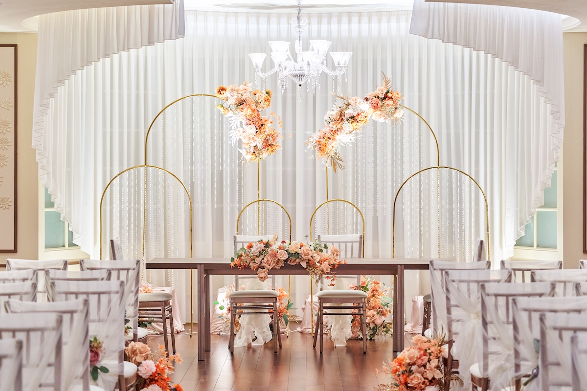 為協助新人打造出心目中的理想婚禮,酒店專業婚宴團隊將悉心為準新人度身打造合適的婚禮方案,從場地選擇、婚宴形式到細節安排皆一一照顧。無論是戶外婚禮的雨天備案、酒店房間的出門配套,還是囍帖設計等細緻服務,團隊都會周全考慮,確保每個環節盡善盡美,讓新人輕鬆籌備浪漫式的婚禮。