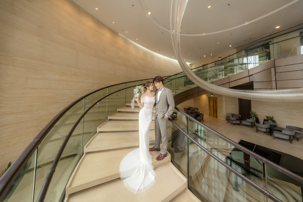 - 華麗的旋轉樓梯及迷人的花卉桌面布置,拍結婚影或大合照非常上鏡