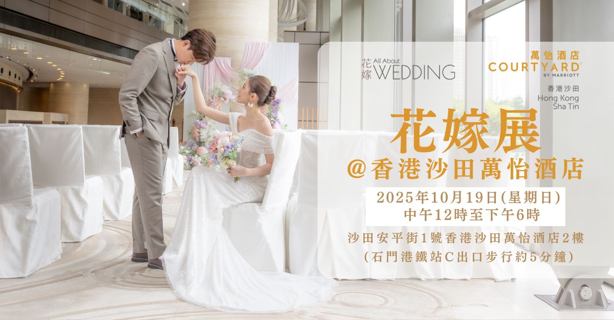 10月19日(星期日) 《花嫁展@香港沙田萬怡酒店》以心水預算策劃婚禮|園林證婚 高樓底無柱宴會廳 中式婚宴西式婚禮同時擁有|立即登記親身參觀