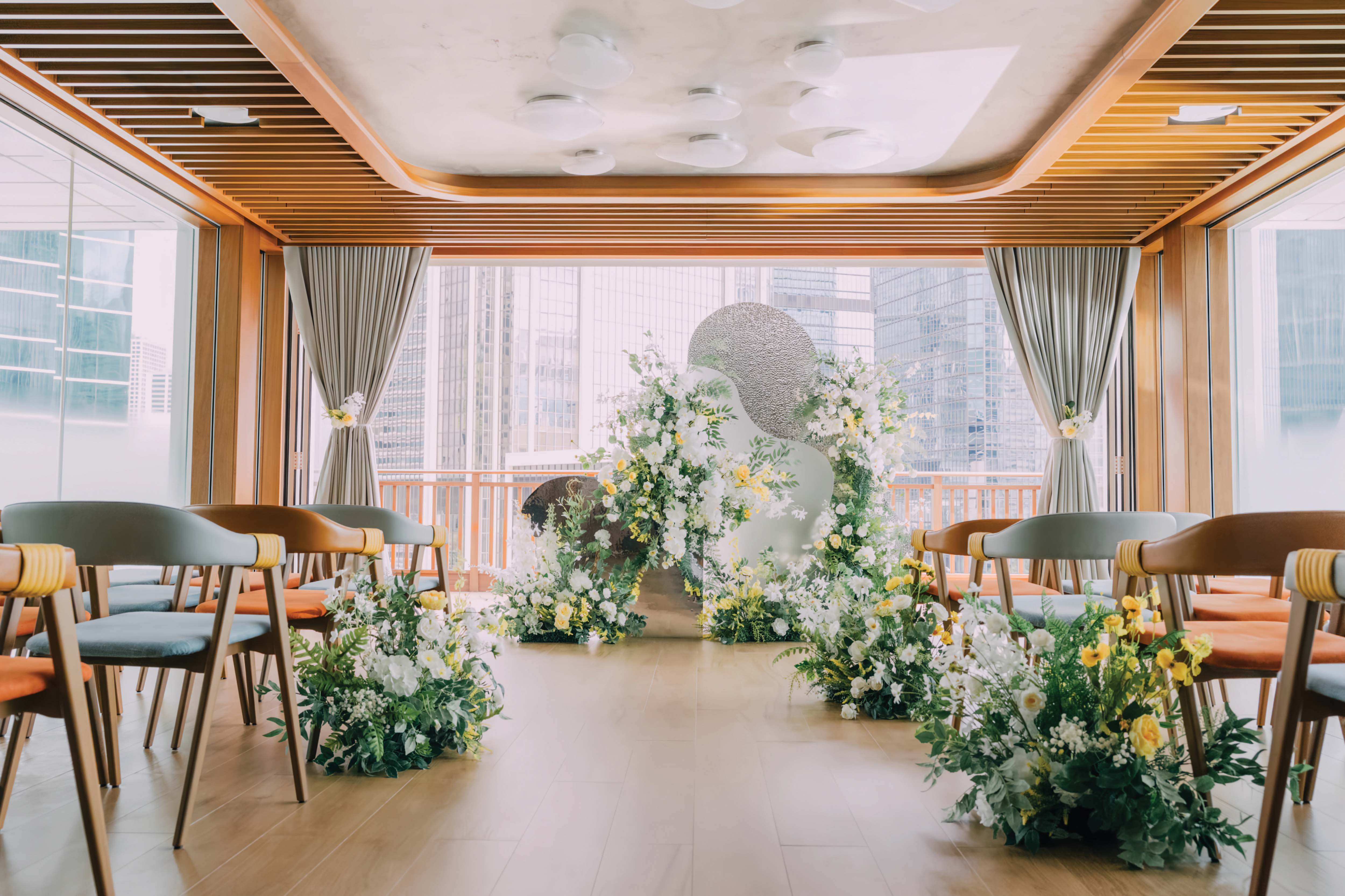 移師至綠意盎然的戶外池畔酒廊,在陽光下舉行一場精緻又浪漫的證婚儀式和雞尾酒會,於微風與綠意中許下誓言。戶外池畔酒廊是城市中的隱秘綠洲,佔地逾 1,300 平方呎,坐擁翠綠山巒景致,營造度假般的悠閒氛圍。絕佳的自然日光讓新人們輕鬆拍出清新唯美婚照。