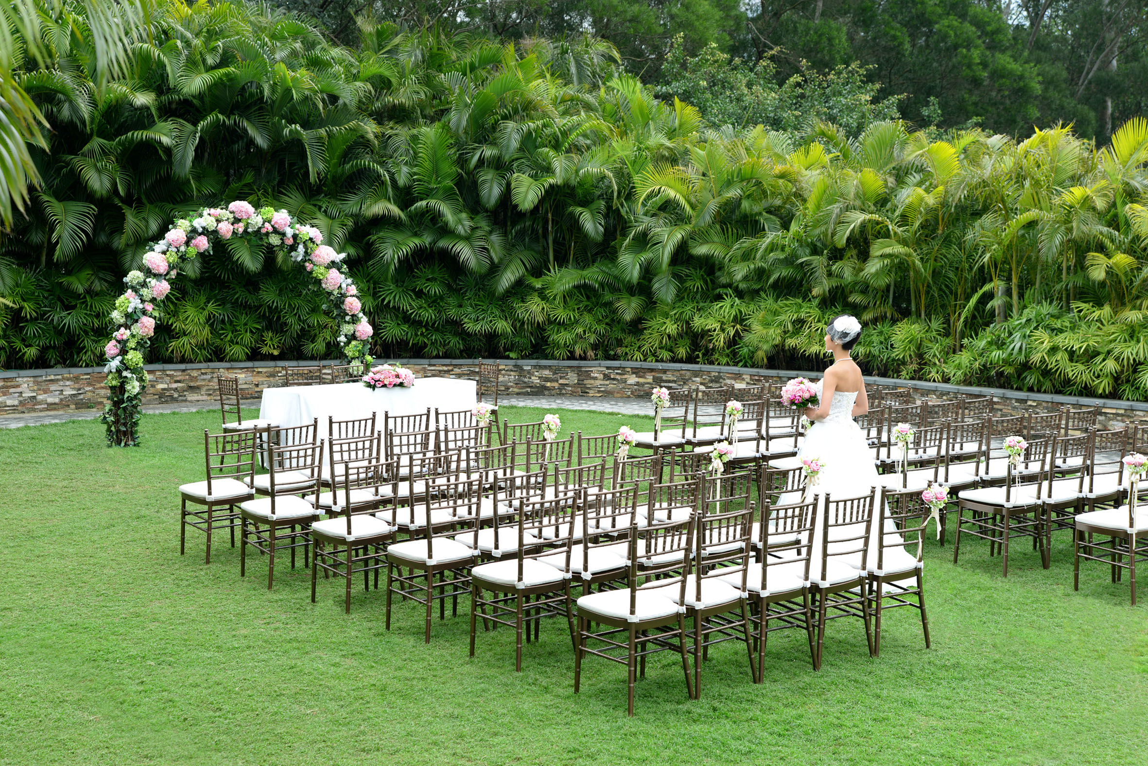 1) 戶外園林景致:戶外園林草地 (Garden) 位於酒店內園的戶外草坪,被茂密的樹木與清新空氣包圍。準新人可以在藍天白雲下交換誓詞,是舉辦小清新證婚或 Cocktail Party 的首選。