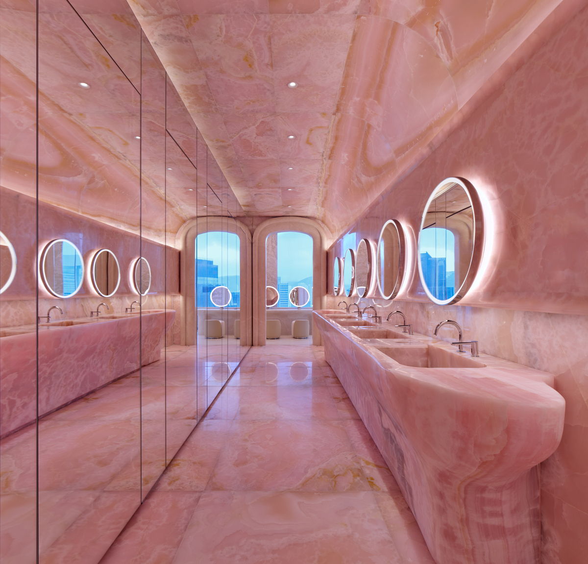 - 前廳設計(約 2,000 呎):可作為賓客迎賓區或互動體驗區,設計採用透光瑪瑙與大理石拼接牆身,搭配逾 2,000 塊天花燈飾,展現華麗氛圍